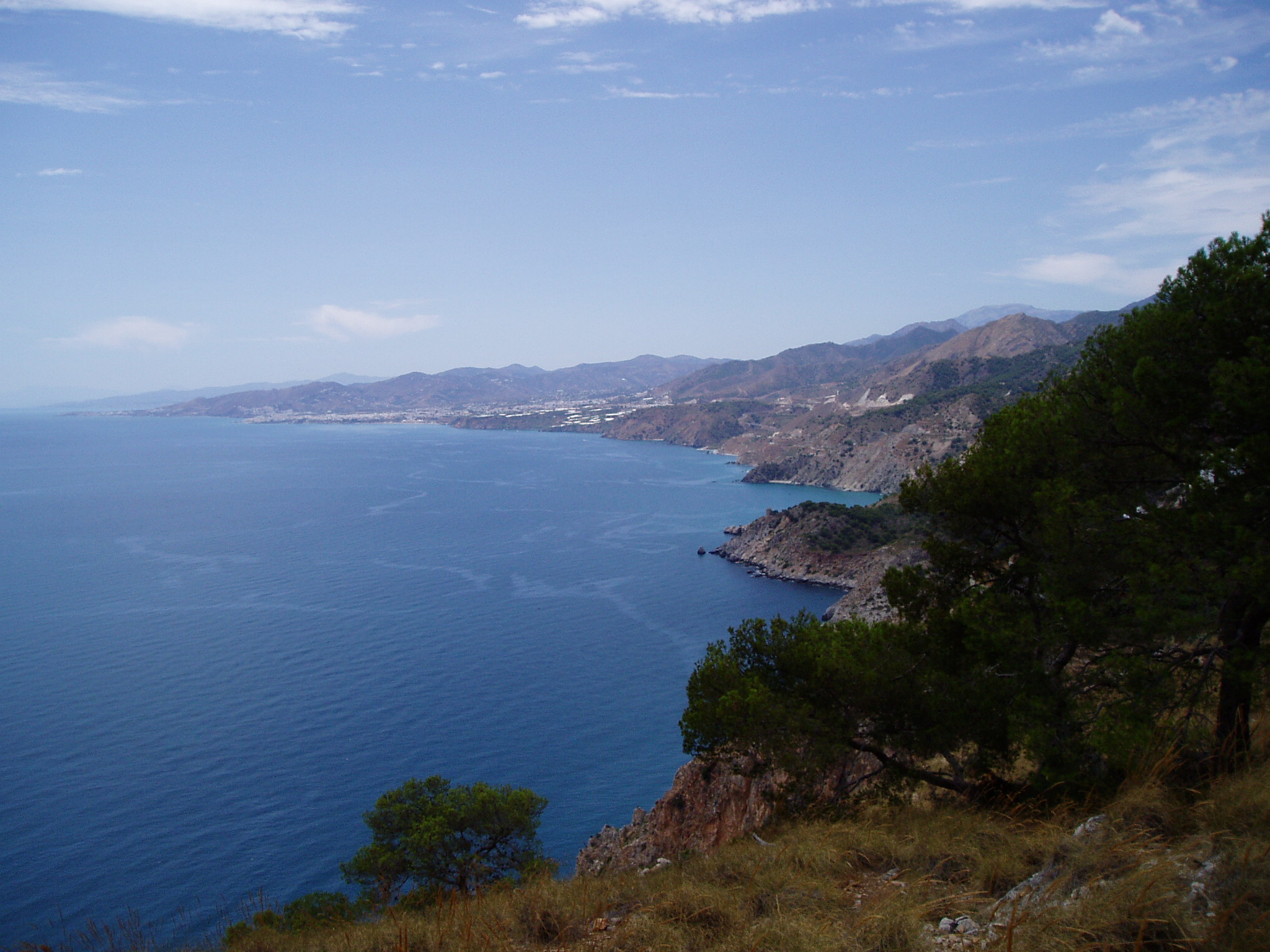 This photograph shows the coastline of the Axarquía, as it drops into the Mediterranean Sea. The view, looking west from Cerro Gordo towards Maro and Nerja, is the one that I have chosen to incorporate into the heading of this blog. I captured the moment on a particularly beautiful summer’s day, after having had lunch on the terrace of a local restaurant.