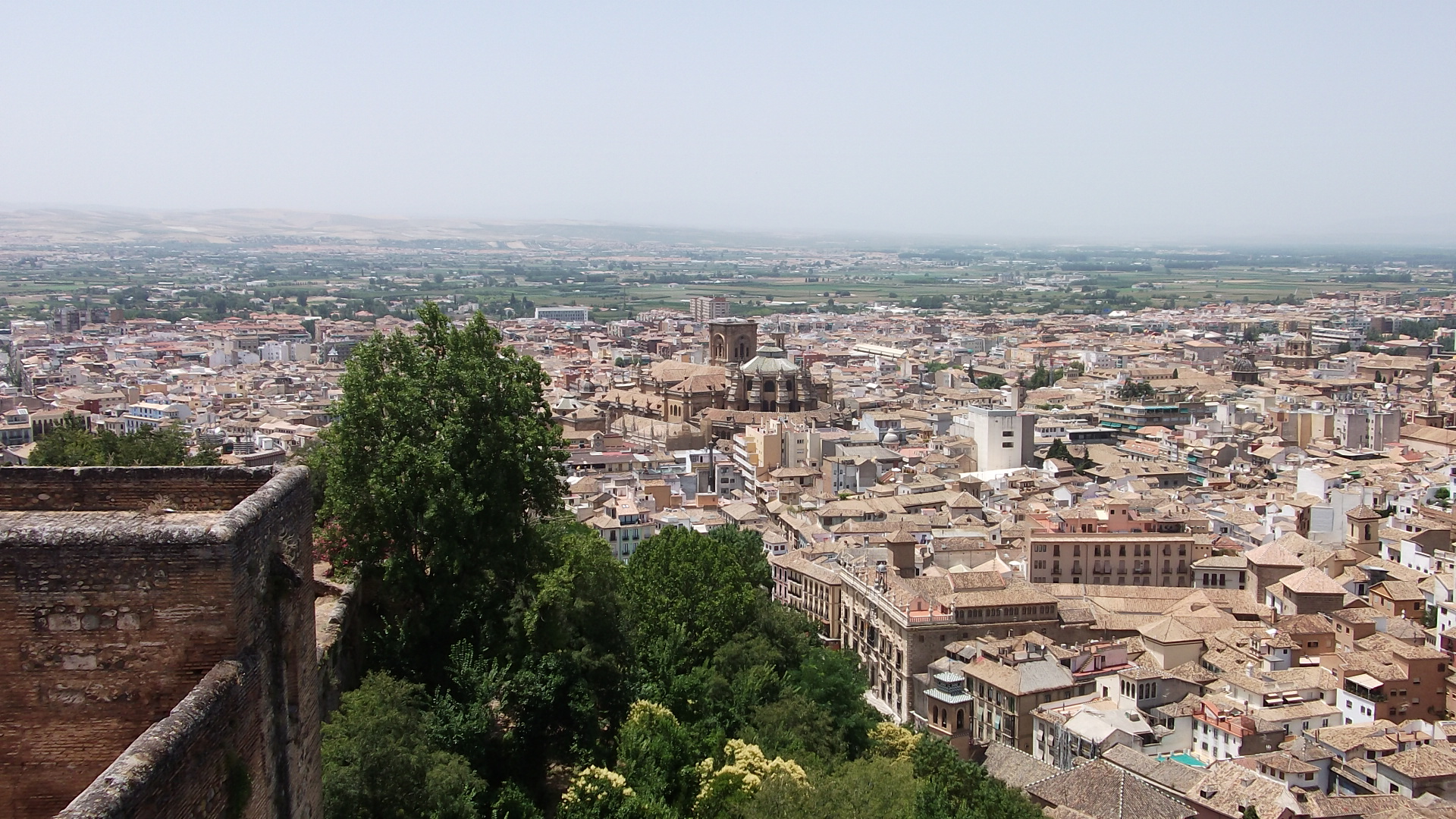The Alhambra resembles many medieval Christian strongholds in its threefold arrangement as a castle, a palace and a residential annex for subordinates, with the alcazaba being its oldest part. Only the massive outer walls, towers and ramparts are left. We climbed the watchtower of the Alcazaba, the Torre de la Vela, 25 m (85 ft) high, for magnificent views over the city, including the old fortified walls of the city of Granada.