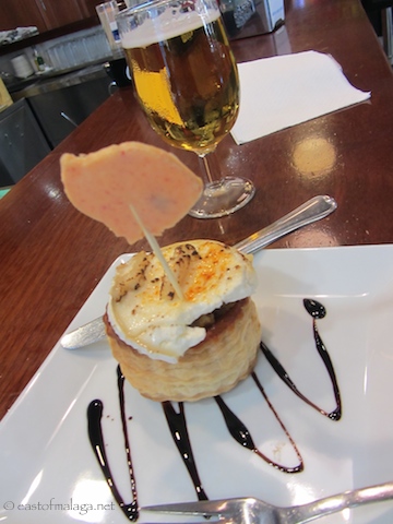 The tapa at Brujas, Paseo Maritimo, Ed. California IV bajos, is “Redondo de verdura, queso y salsa de arandanos” – delicious vegetables, goat cheese and cranberries  (and yet another of my personal favourites!)