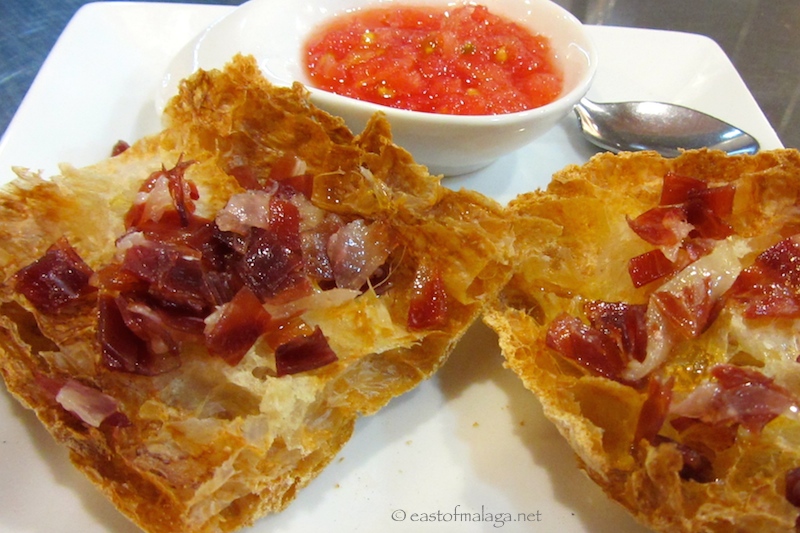 Café Bar Centro, Calle del Mar 25, offered delicious Spanish ham with “Coca de pan de cristal con Ibérico”.