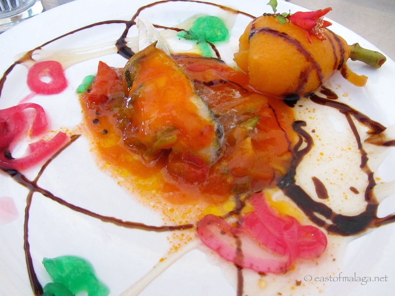 During May, I’ve been following the tapas route around Torre del Mar.  One of my favourites has been this vegetable stack with a cranberry jus.  Yummy!